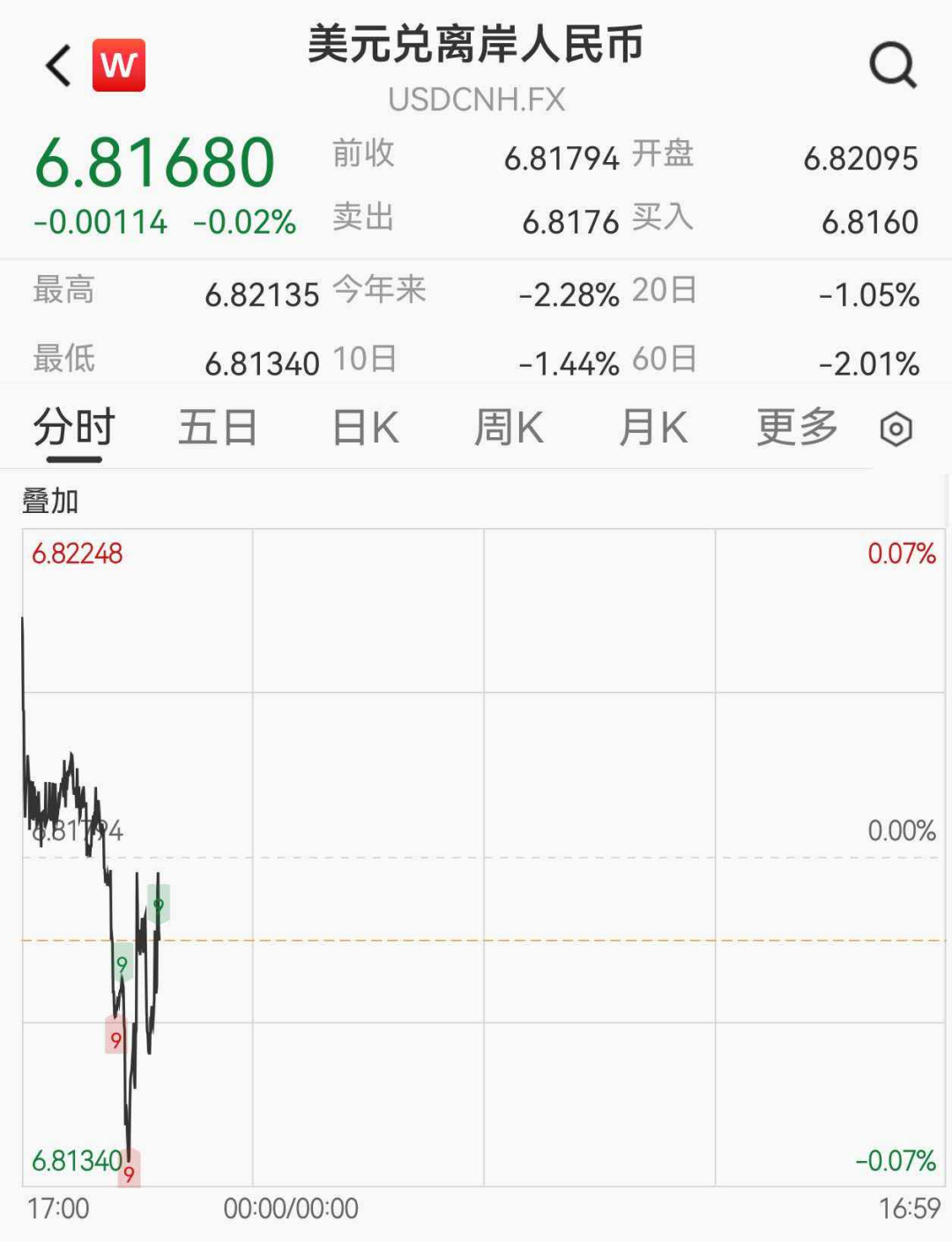 4月14日,离岸人民币对美元盘中涨至6.8134元,创2023年3月23日以来新高。截至8:35,涨幅有所收窄,报6.81680元。在岸人民币兑美元(CNY)北京时间03:00收报6.8300元,较上周五夜盘收盘涨5点。成交量368.73亿美元。